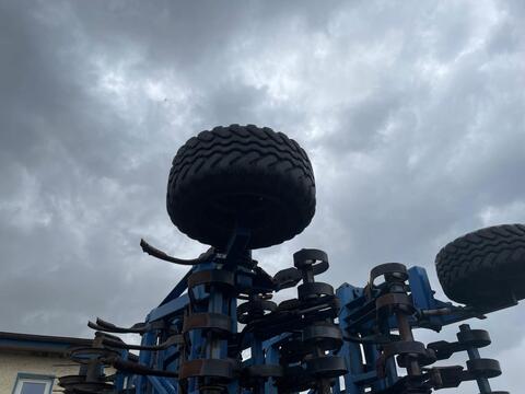 Gezogen, Hydraulische Klappung, Stützfuß / -rad ________ 12m Grubber mit Fahrwerk, Stuetzraeder, doppel STS Walze, Crossboardschiene, Federzinken, StriegelZinken (Stk.): 72