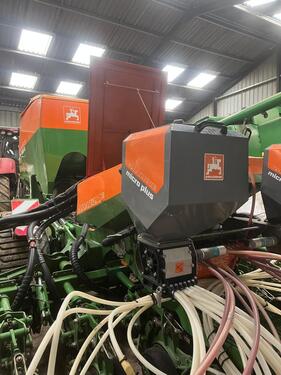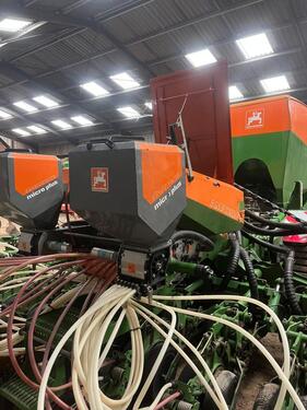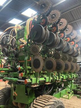 Reihen- / Körperabstand: 50 cm, Flächenleistung: 3490 ha, Reihenanzahl (12-reihig) ________ 3000 Liter Düngetank, 2 Mikrogranulatoren und Hauptbehäler, 3 Dosiereinheiten: Amatron+, Amadrill für Mikrogranulatoren Saattrommeln für Mais, Raps, Sonnenblumen Sorghum und SojaReihenanzahl: 12