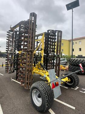 Gezogen, Hydraulische Klappung, Stabrohrwalze, Walze ________ 6m Saatbettkombination mit Unterlenkeranhängung, Fahrwerk, 24 Zinken, Crossboard, Flachstabwalze, Rohrstabwalze, Nockenringwalze, extra Elemente mit Feingrubberzinken