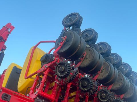 Flächenleistung: 3100 ha, Reihenanzahl (12-reihig), Beladestufe, Saatmengenverstellung hydraulisch, Reihenstreuvorrichtung, Mulchsaat, Betriebsstundenzähler, Rapsausrüstung, Zweischeibenschare ________ Fahrwerk, hydr. klappbar, 12 Reihen, Spurreiser, Befüllschnecke Zwillingsräder (demontiert) 270/95R44, K80, iPad, DL BremseReihenanzahl: 12