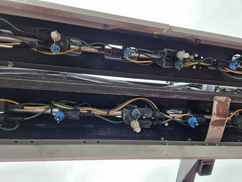Bereifung (v): 520/85 R46, Zustand-Bereifung (v): 40 %, Bereifung (h): 520/85 R46, Zustand-Bereifung (h): 40 %, Geschwindigkeit: 40 km/h, Spurweite: 225 cm, Beleuchtung/Warntafeln, Bedienterminal, Kamera / Videoüberwachung, Wasserbehälter / -tank ________ Düsen alle 25 und 50 cm, pneumatisch gesteuert Track Leader-Navigation Vorbereitet für John Deere AutoTrack-Spurführung Deutz-Motor, 270 PS Betriebsstunden 5365 h (46177 ha)